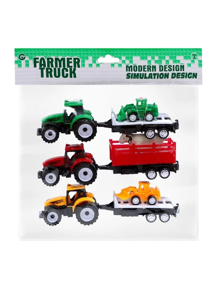 Набор тракторов с прицепами станет отличным подарком для маленьких любителей техники и фермерских приключений, делая игру весёлой и увлекательной!