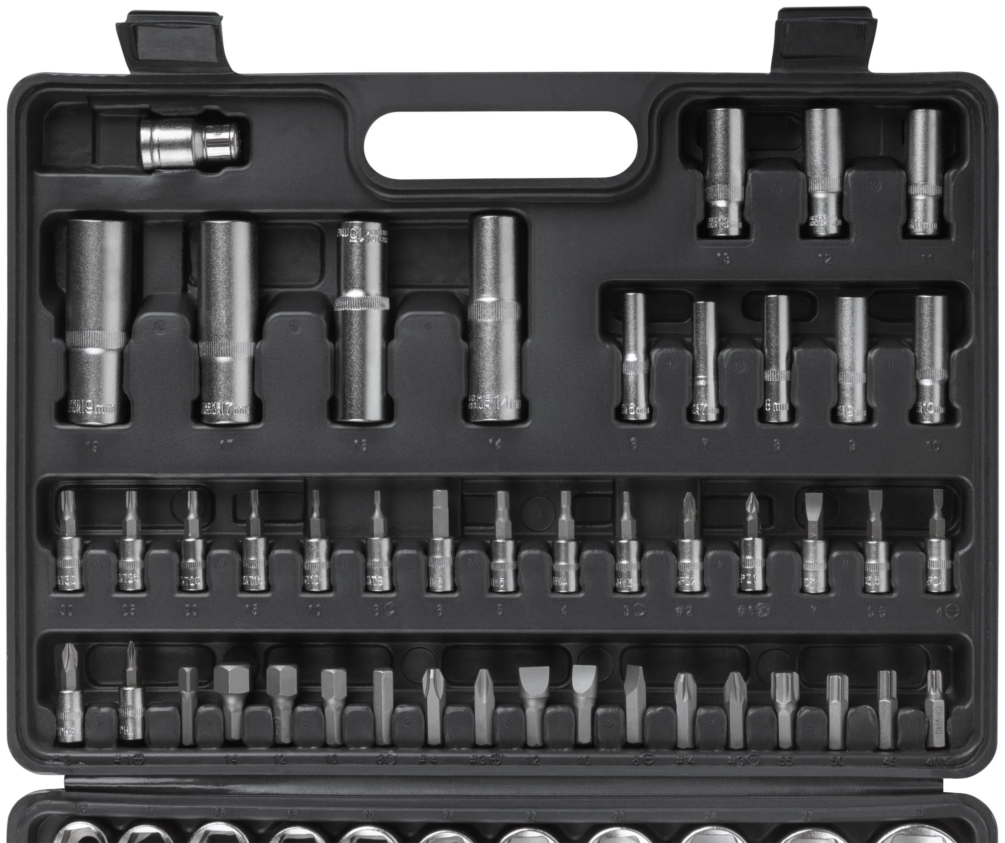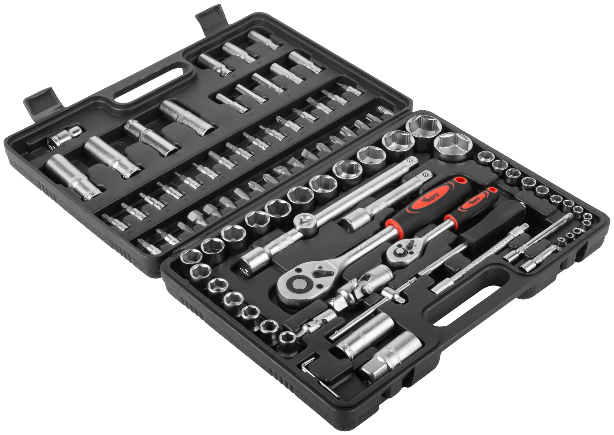 Благодаря разнообразию головок, трещоточных ключей и удлинителей, этот набор позволяет решать широкий спектр задач, от замены свечей зажигания до сложных ремонтных работ.