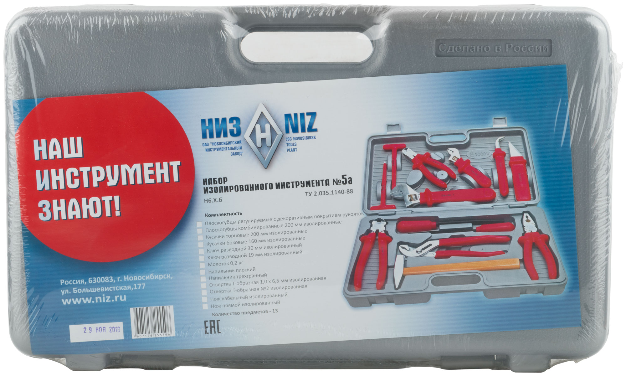 Диэлектрический набор инструментов 1000 В НИЗ №5а с 13 предметами для безопасного электромонтажа
