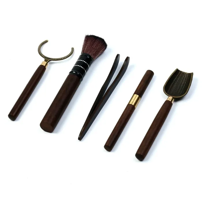 Набор включает в себя инструменты для проведения различных манипуляций во время чаепития или чайной церемонии.