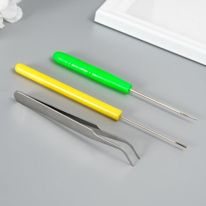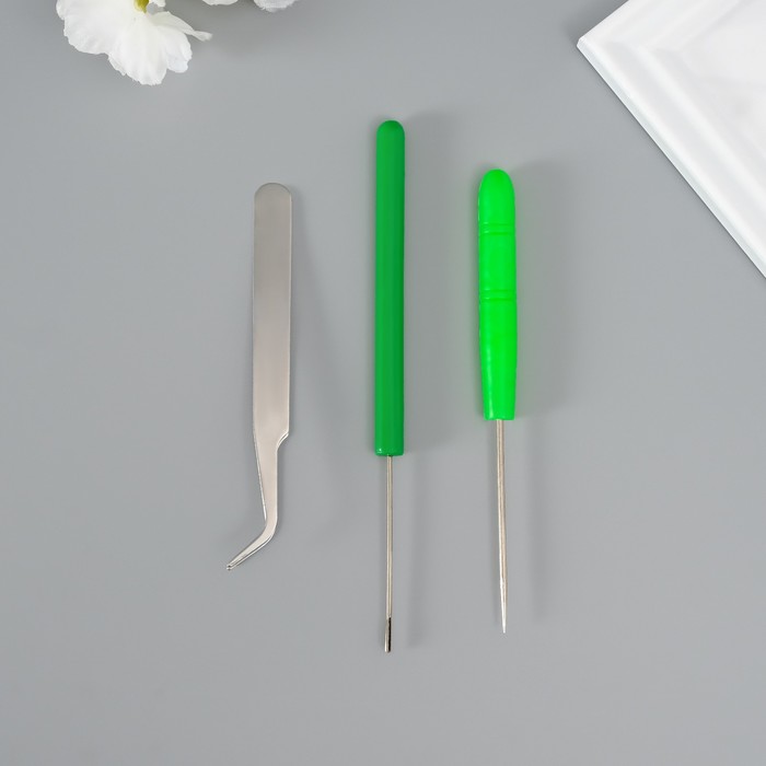 Набор инструментов для квиллинга: инструмент разрез 0.7 см, шило, пинцет МИКС — Характеристики