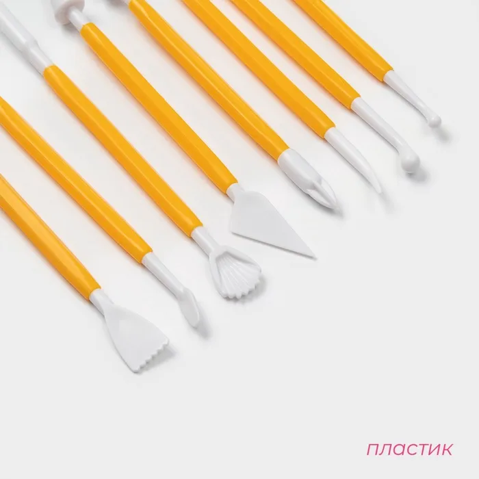 Набор инструментов для работы с мастикой Доляна, 8 шт., пластик, жёлтый — Характеристики