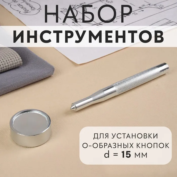 Набор инструментов для ручной установки О-образных кнопок, с колодцем, №201, d=15 мм