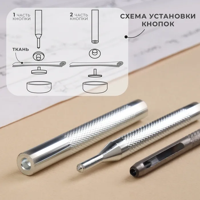Набор инструментов для ручной установки S-образных кнопок, с колодцем, №655, d=10 мм — Характеристики