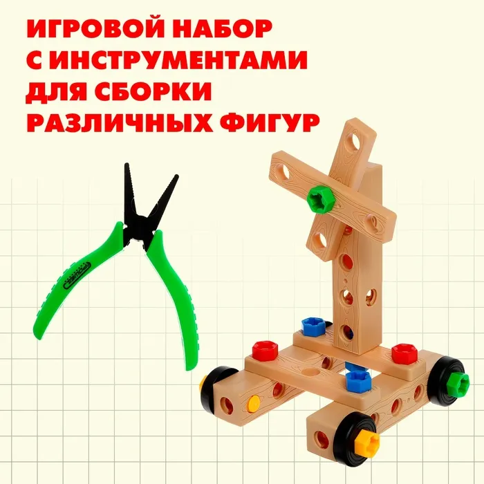 Хотите, чтобы ребёнок не просто играл, а создавал? С набором инструментов «Собери сам» ваш маленький мастер сможет строить, конструировать и моделировать самые разные механизмы! В комплект входит 50 предметов, которые помогут развить воображение, логику и мелкую моторику.