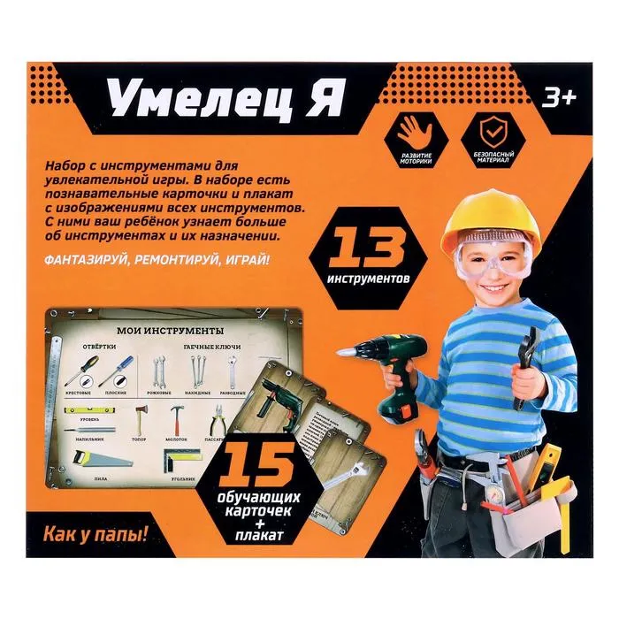 Набор инструментов «Супер мастер», с обучающими карточками, 13 элементов — Характеристики