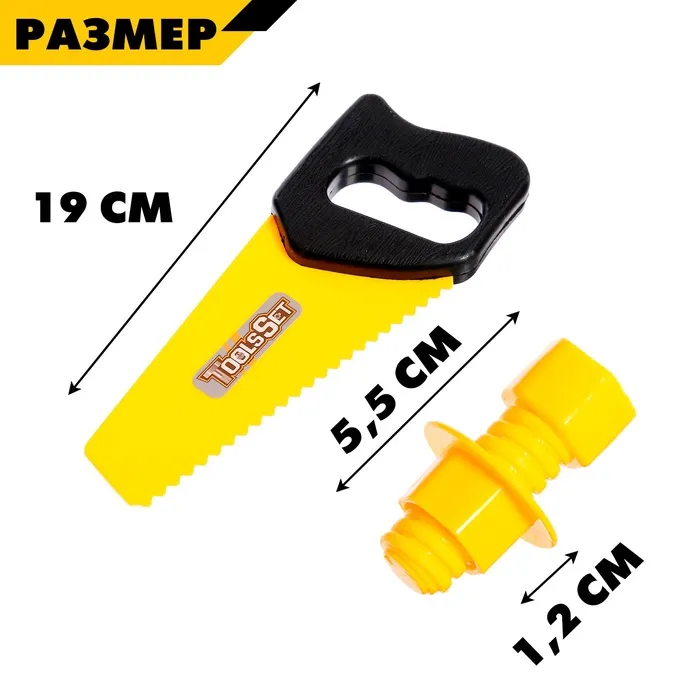 - Твои инструменты всегда под рукой: в наборе есть всё, что нужно для настоящего мастера: ключ, ножовка и другие важные инструменты. Каждый предмет помогает создавать свои собственные истории и придумывать новые задачи.