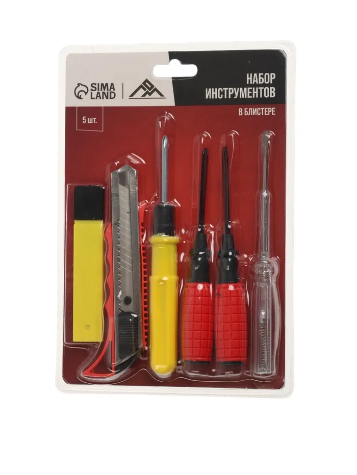 Набор инструментов в блистере ЛОМ, нож, отвертки PH1 и SL5, 2 в 1, индикаторная, 5 шт. — Характеристики