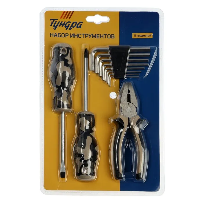 Набор инструментов в блистере ТУНДРА, отвертки, плоскогубцы, ключи, 11 предметов — Характеристики