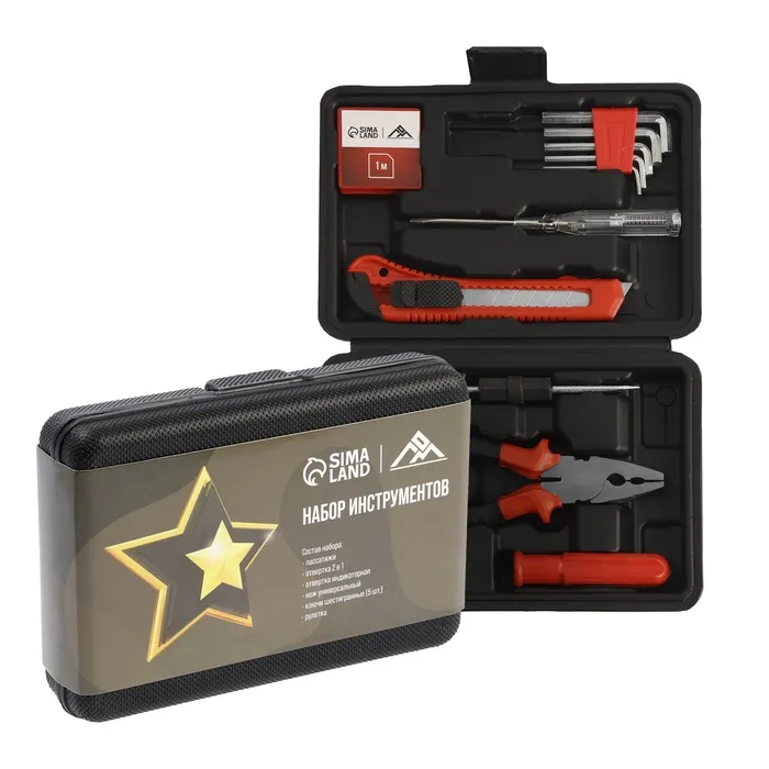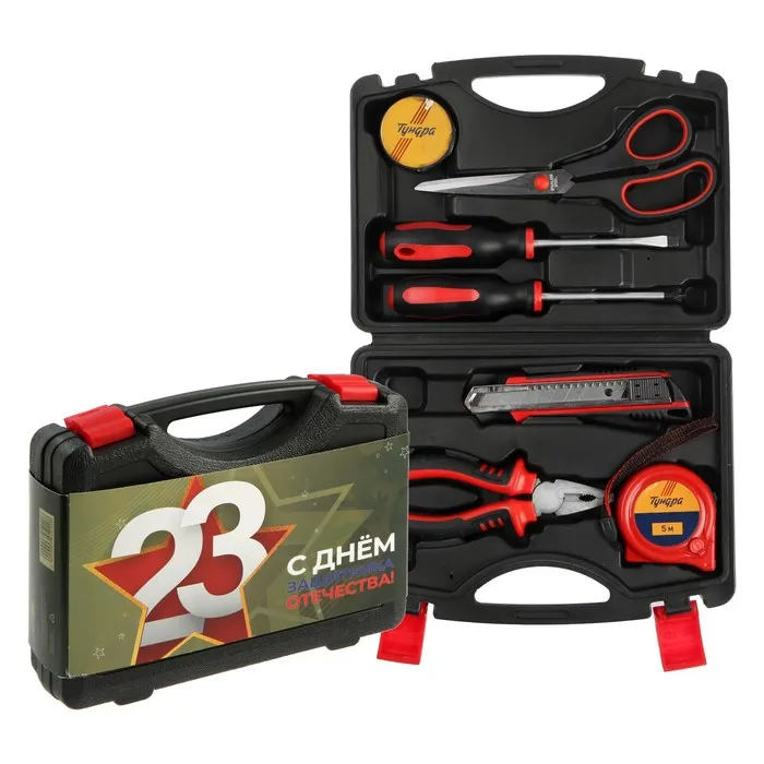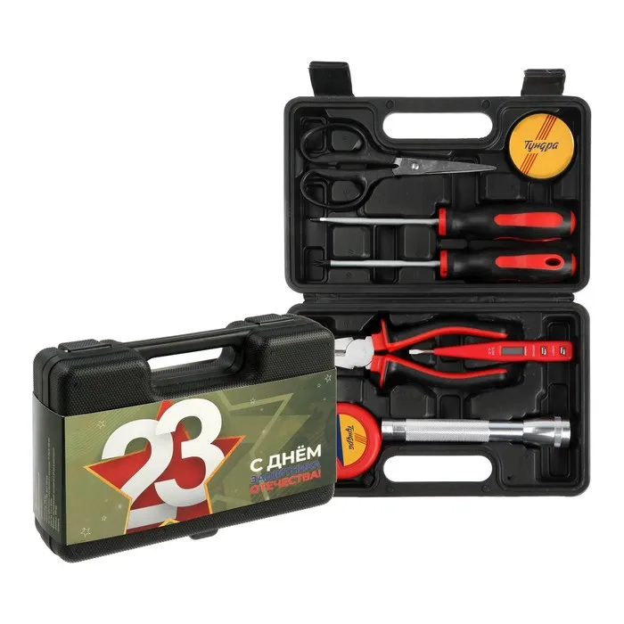 Набор инструментов в кейсе ЛОМ «23 ФЕВРАЛЯ», в подарочной упаковке, 11 предметов — Характеристики