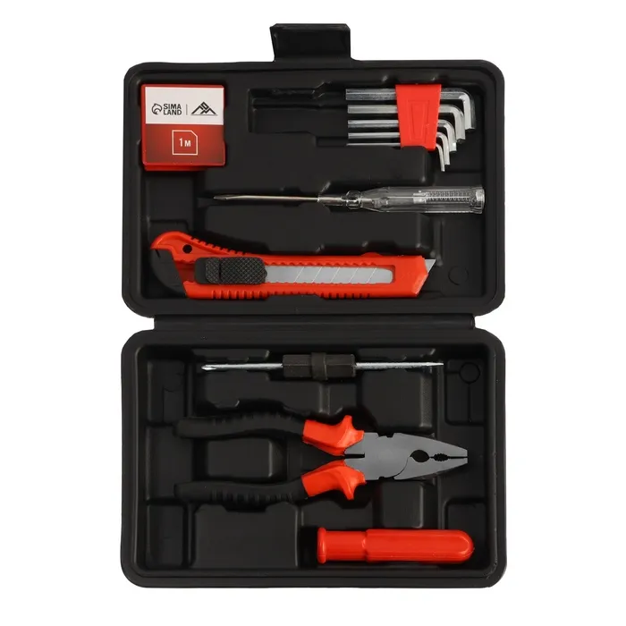 - Разнообразные инструменты, включая рулетку, тестер, плоскогубцы и нож, касаются всех основных бытовых потребностей.
