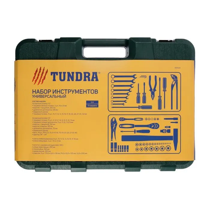 Набор инструментов в кейсе ТУНДРА, автомобильный, CrV, 1/2", 1/4", 72 предмета — Характеристики
