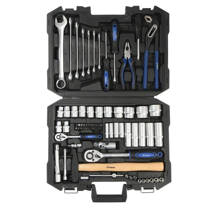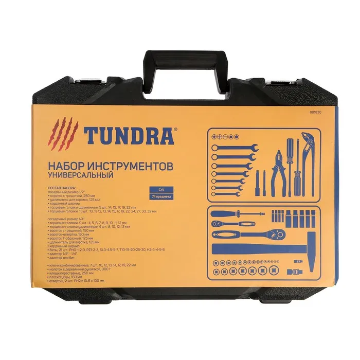 Набор инструментов в кейсе ТУНДРА, автомобильный, CrV, 1/2", 1/4", 74 предмета — Характеристики