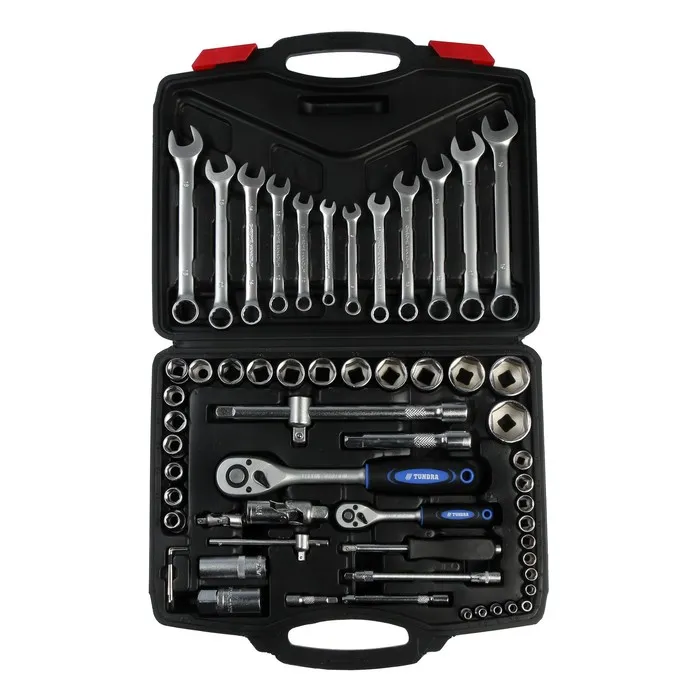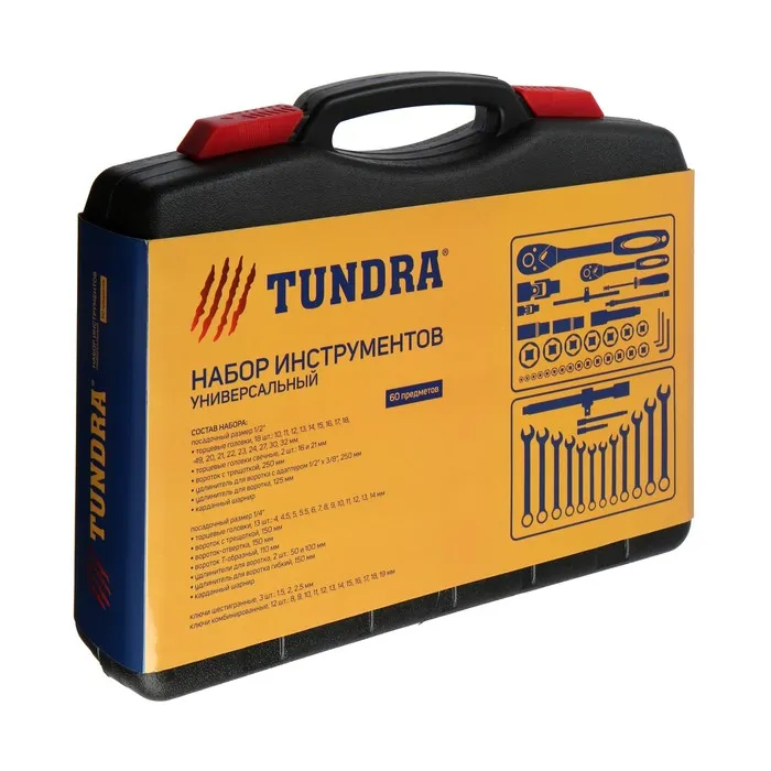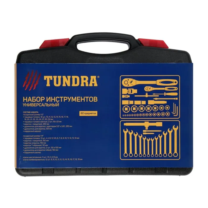 Набор инструментов в кейсе ТУНДРА, автомобильный, CrV, 1/2" и 1/4", 60 предметов — Характеристики
