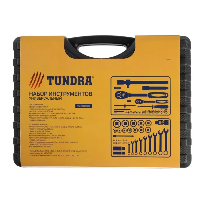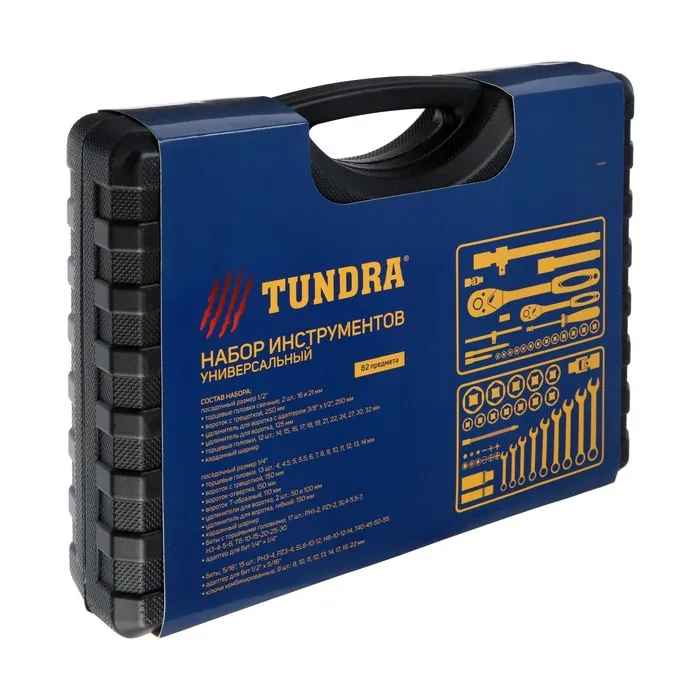 Набор инструментов в кейсе ТУНДРА, автомобильный, CrV, 1/2" и 1/4", 82 предмета — Характеристики