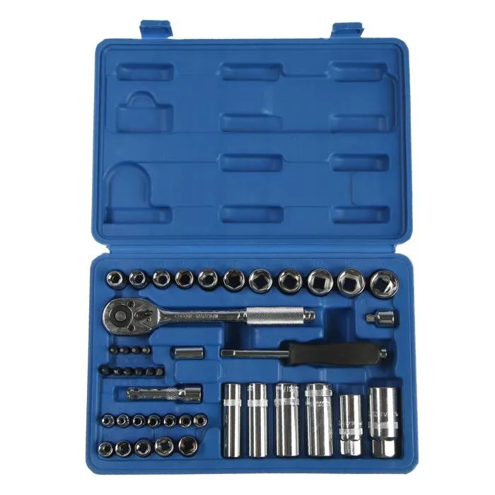 Набор инструментов в кейсе ТУНДРА, автомобильный, CrV, 1/4" и 3/8", 44 предмета — Характеристики