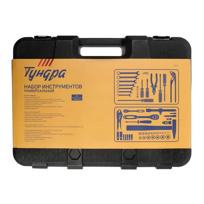 Набор инструментов в кейсе ТУНДРА, автомобильный, CrV, 75 предметов — Характеристики
