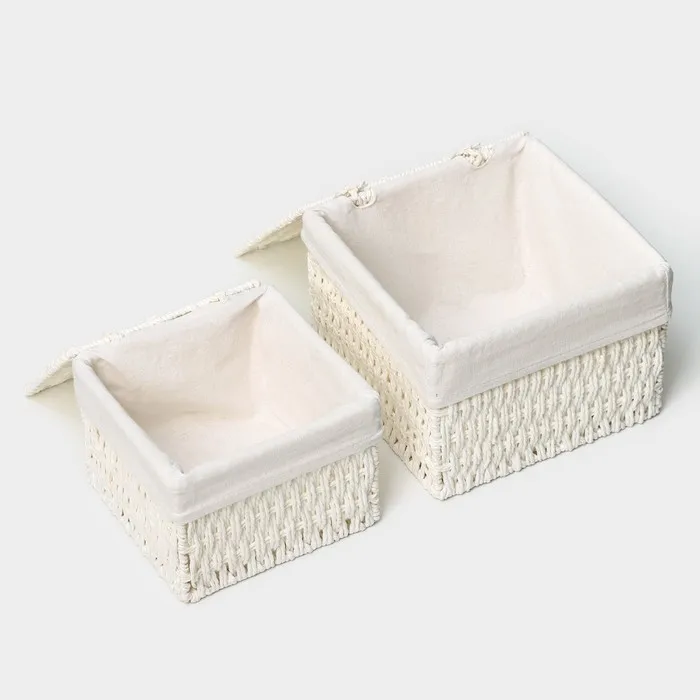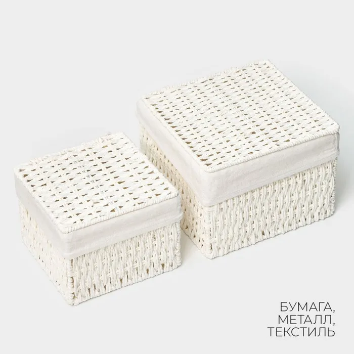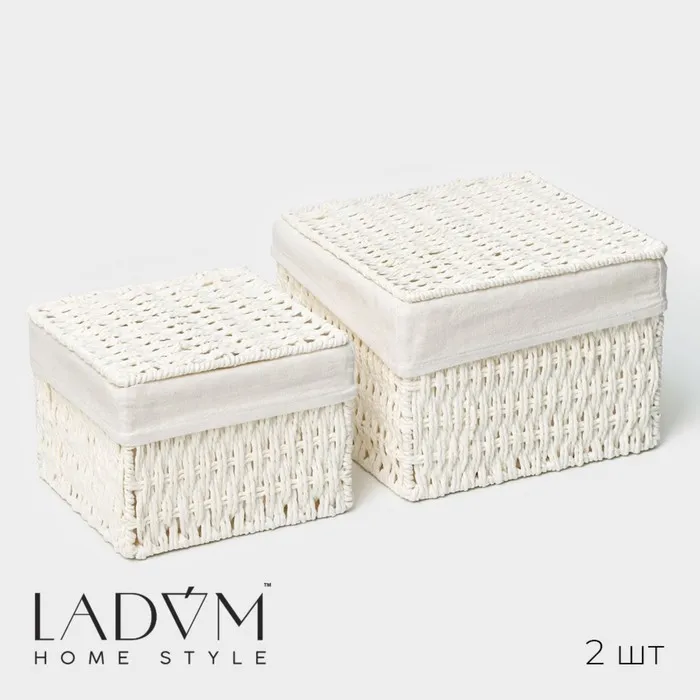 Набор интерьерных корзин ручной работы с крышкой LaDо́m, 2 шт, размер: 20×20×15 см, 25×25×18 см — Характеристики