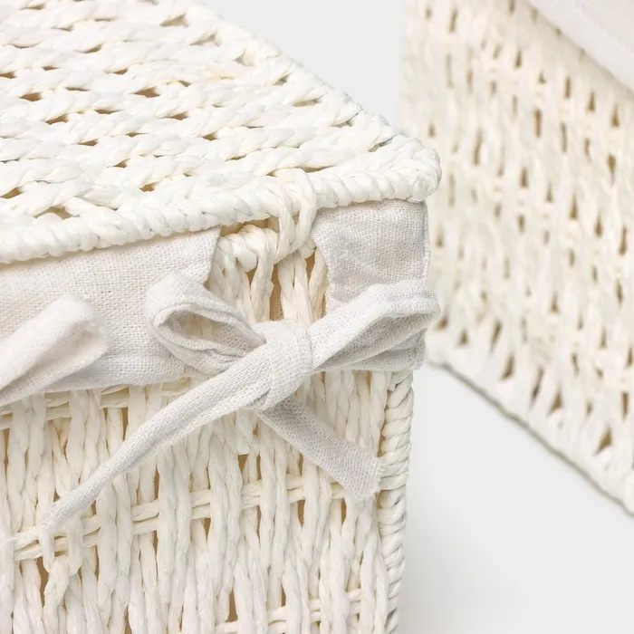 Набор интерьерных корзин с крышкой ручной работы - это идеальный выбор для тех, кто ценит изысканность, уют и индивидуальный подход в оформлении своего дома или офиса.