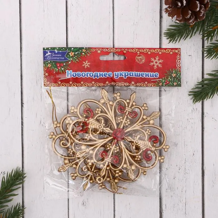 Набор ёлочных игрушек 2 шт. «Зимнее волшебство. Снежинка королевская» пластик, 11х9 см, МИКС — Характеристики