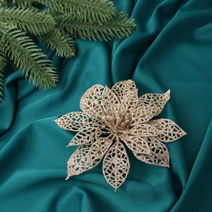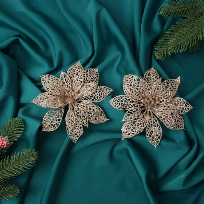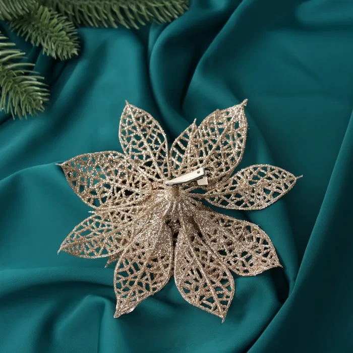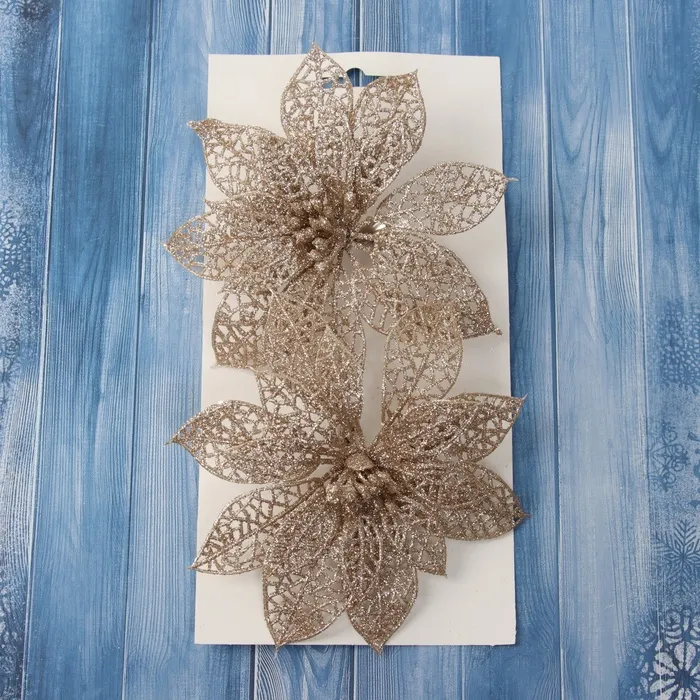 Набор ёлочных игрушек 2 шт. «Зимнее волшебство. Цветы сетка блеск» пластик, на зажимах, 13х13 см, золото — Характеристики