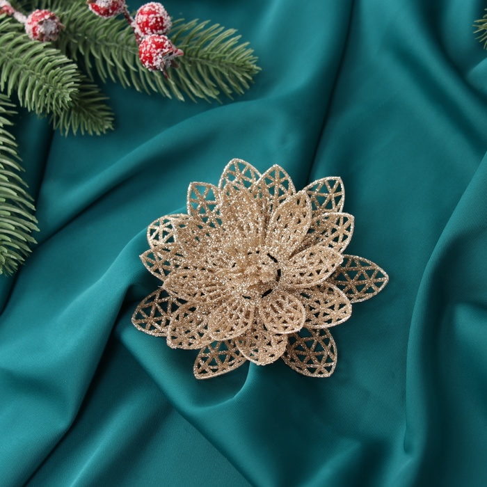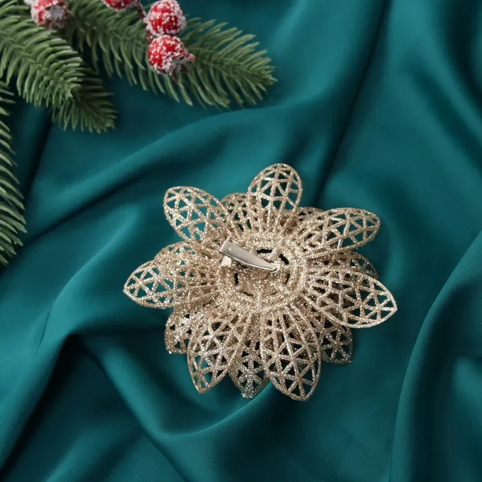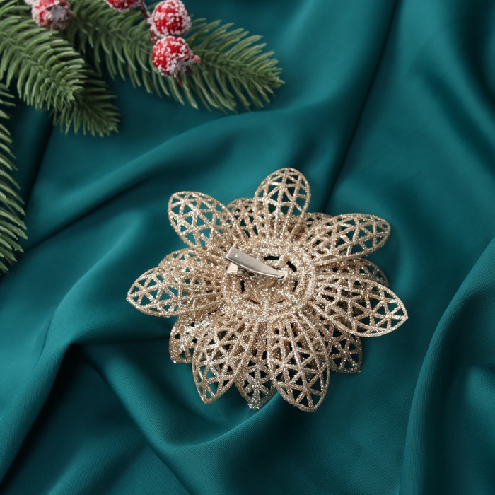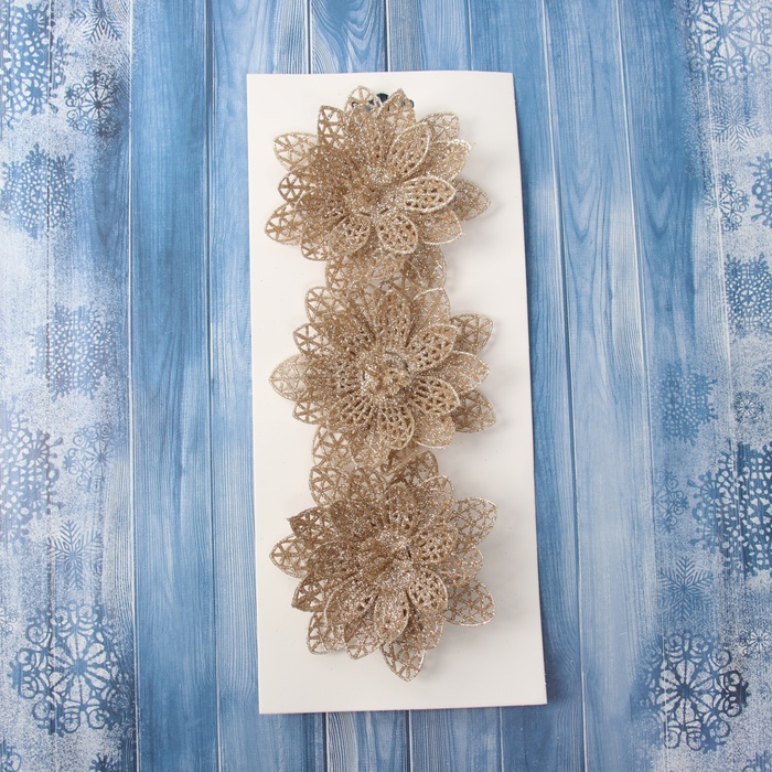 Набор ёлочных игрушек 3 шт. «Зимнее волшебство. Цветы блеск ажурные» пластик, на зажимах, 9 см, золото — Характеристики