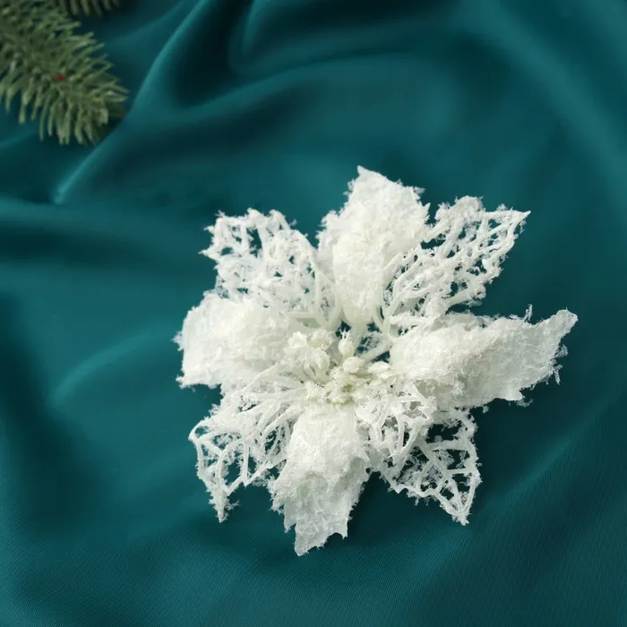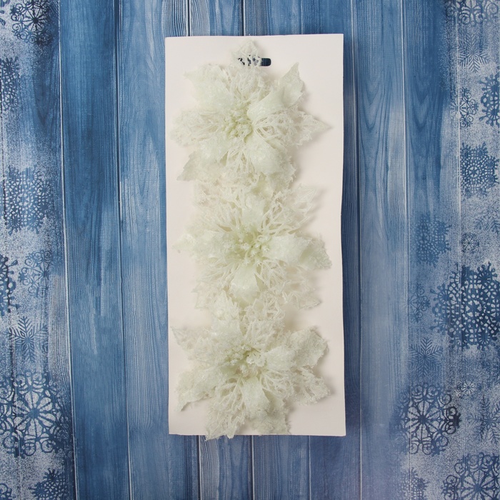 Набор ёлочных игрушек 3 шт. «Зимнее волшебство. Цветы заснеженные» пластик, резные, 10 см, белый