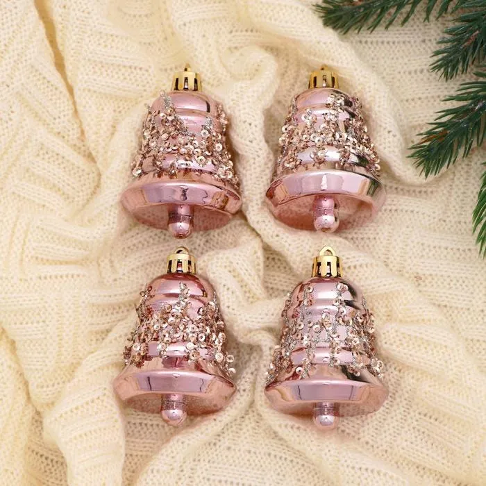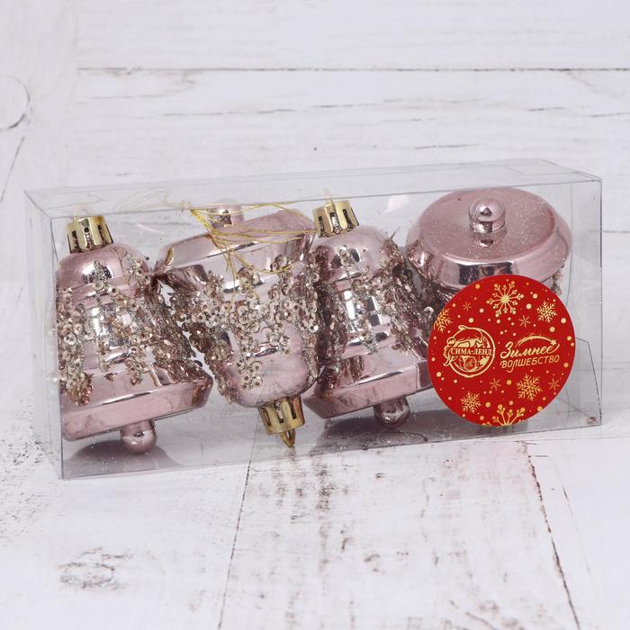 Набор ёлочных игрушек 4 шт. «Зимнее волшебство. Время праздника» пластик, 5 см, розовый — Характеристики