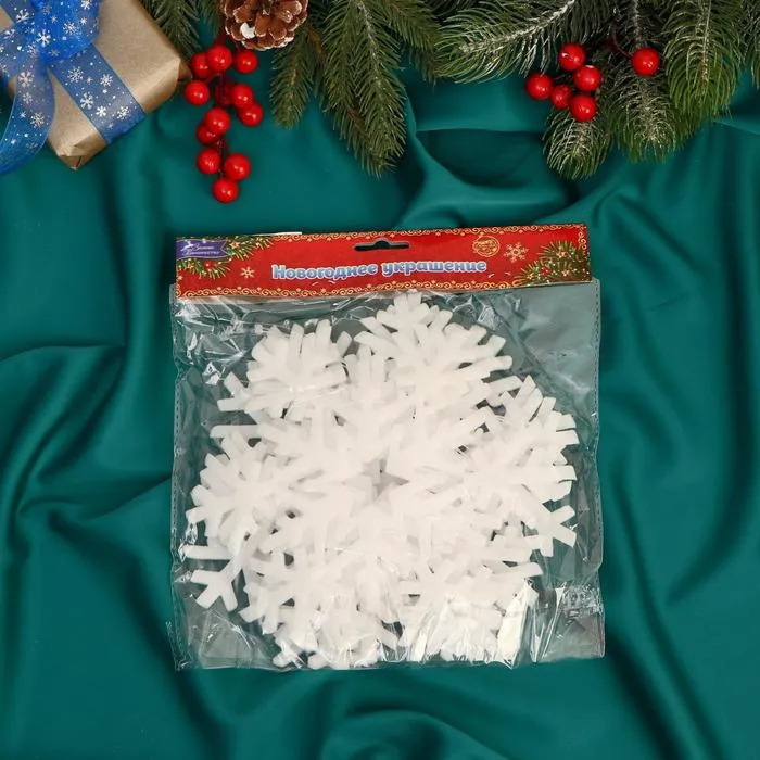Набор ёлочных игрушек 6 шт. «Зимнее волшебство. Снежинка» пластик, d-20 см, белый — Характеристики