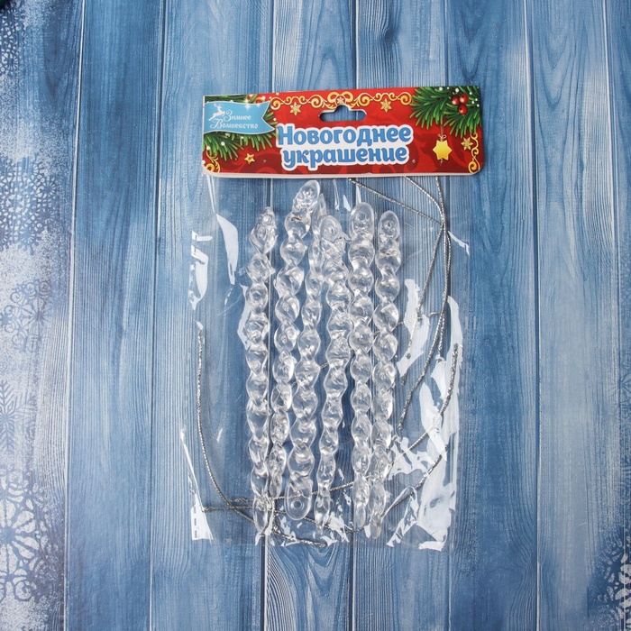 Набор ёлочных игрушек 6 шт. «Зимнее волшебство. Сосулька волнистая» пластик, 13х1 см, прозрачный