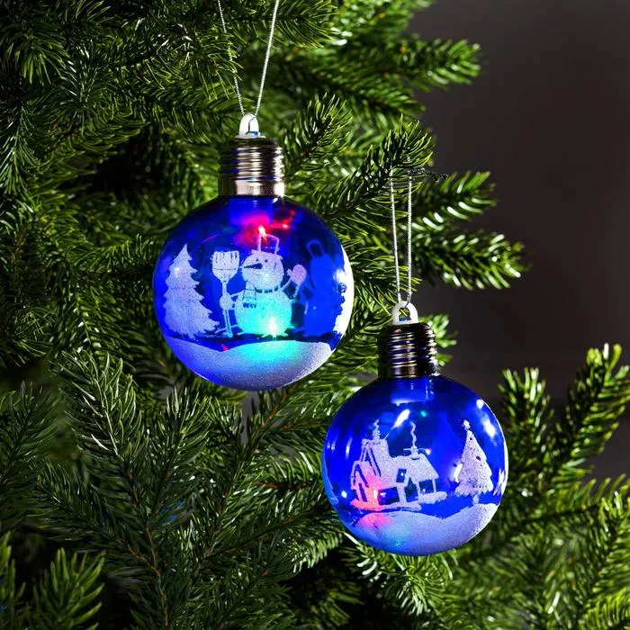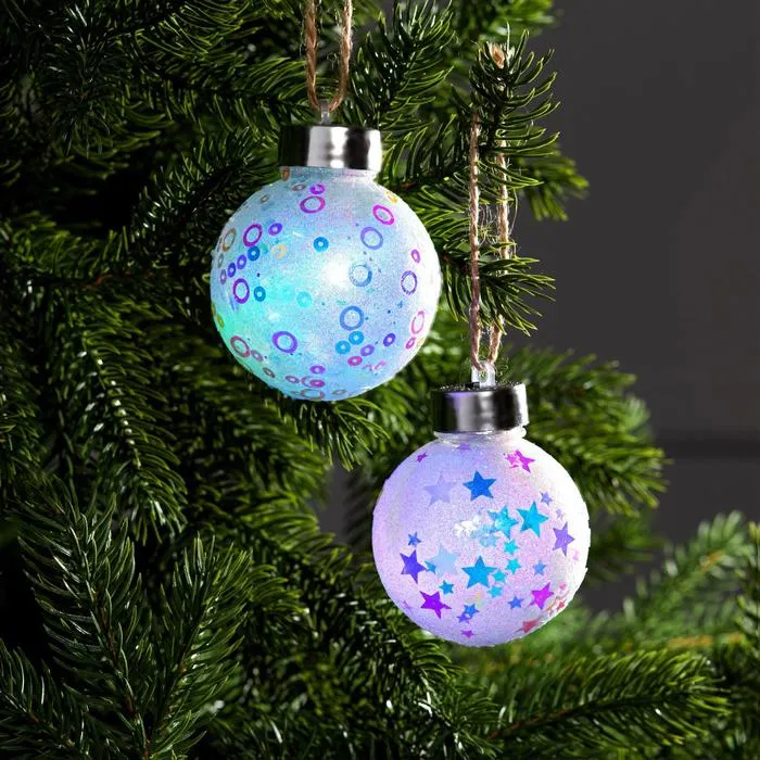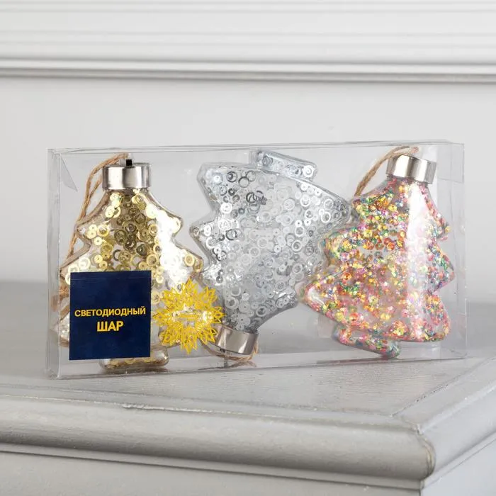 Набор ёлочных шаров «Ёлочки» 3 шт., батарейки, 1 LED, свечение тёплое белое, RGB, белое — Характеристики