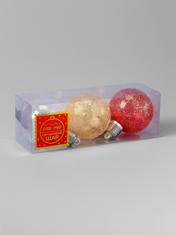 Набор ёлочных шаров «Ледяное сияние», 8 см, 1 LED, от батареек LR44×3, свечение тёплое белое — Характеристики