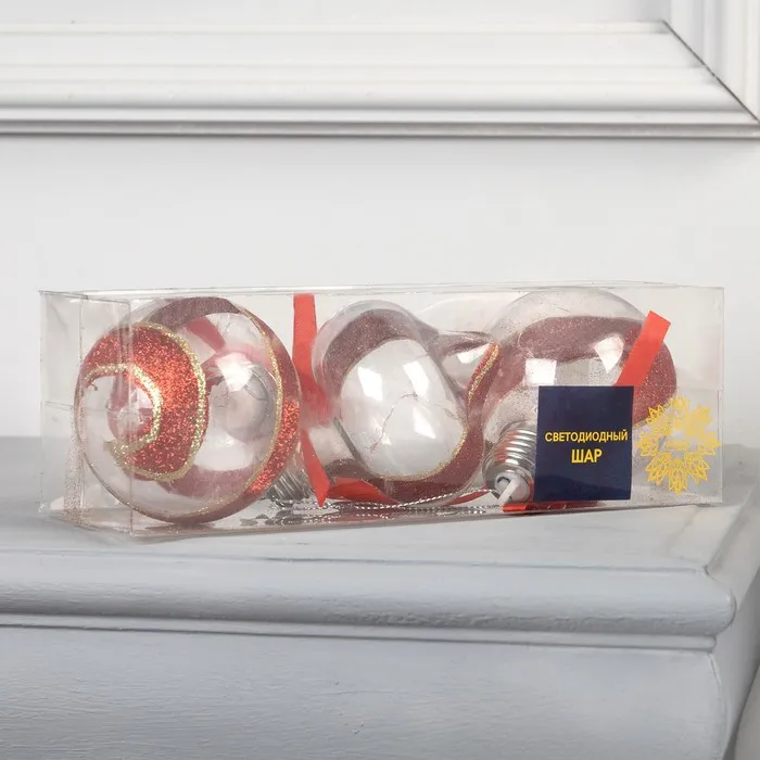 Набор ёлочных шаров Luazon Lighting, 3 штуки, батарейки, 5 LED, свечение тёплое белое — Характеристики