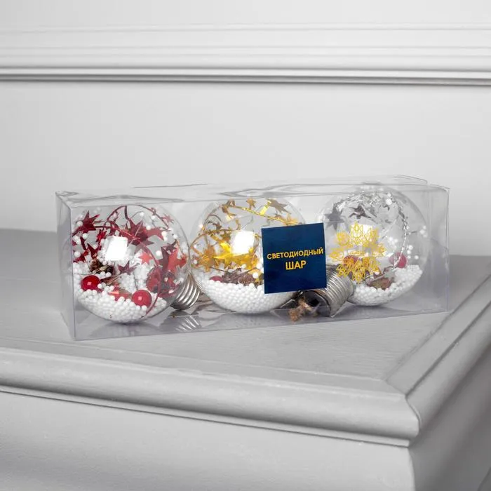 Создайте атмосферу волшебства: Этот набор — ключ к тёплой, душевной новогодней атмосфере. Три светящихся шара с мишурой станут ярким акцентом на вашей ёлке. Это готовое решение для любителей ностальгии и практичный подарок, который точно оценят. Встречайте Новый год в сиянии знакомого с детства уюта!