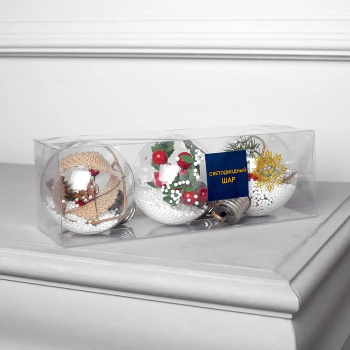 Набор ёлочных шаров «Зимний лес» 3 шт., батарейки, 1 LED, свечение белое — Характеристики