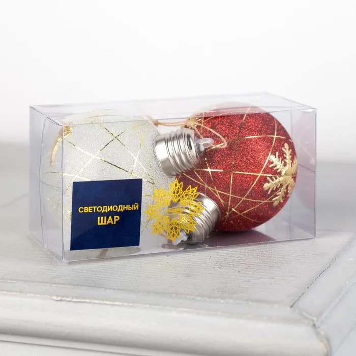 Набор ёлочных шаров «Золотистые нити» 2 шт., батарейки, 1 LED, свечение тёплое белое — Характеристики
