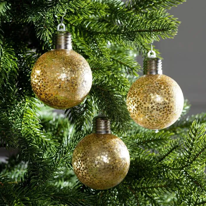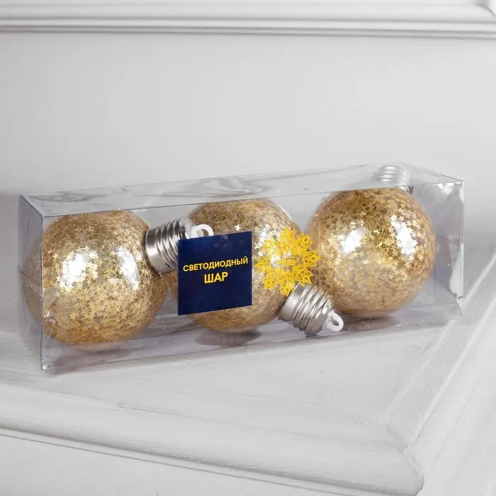 Набор ёлочных шаров «Звёздочки золотистые» 3 шт., батарейки, 5 LED, свечение тёплое белое — Характеристики