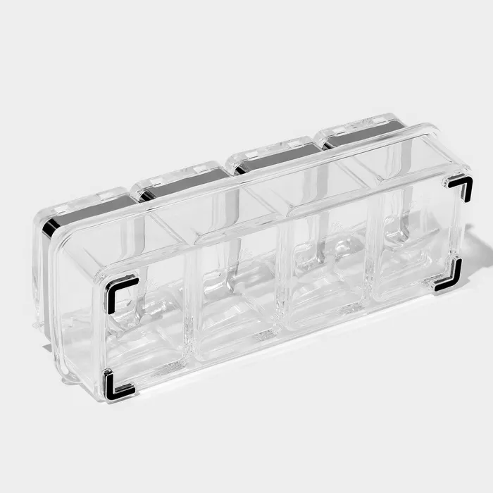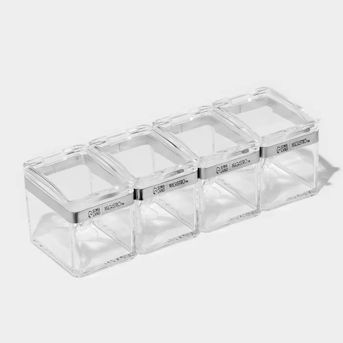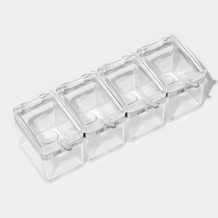 - Идеальная организация: 4 контейнера для разных видов специй – забудьте о беспорядке на кухне.