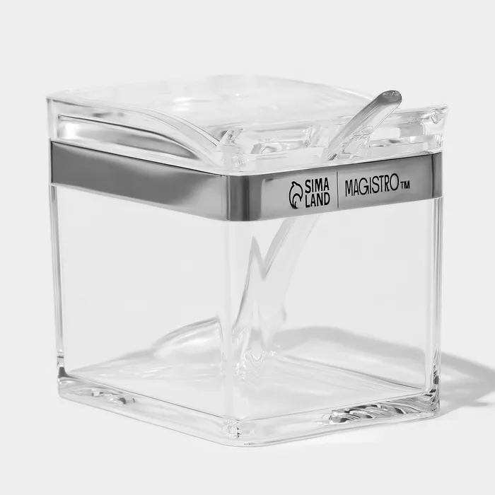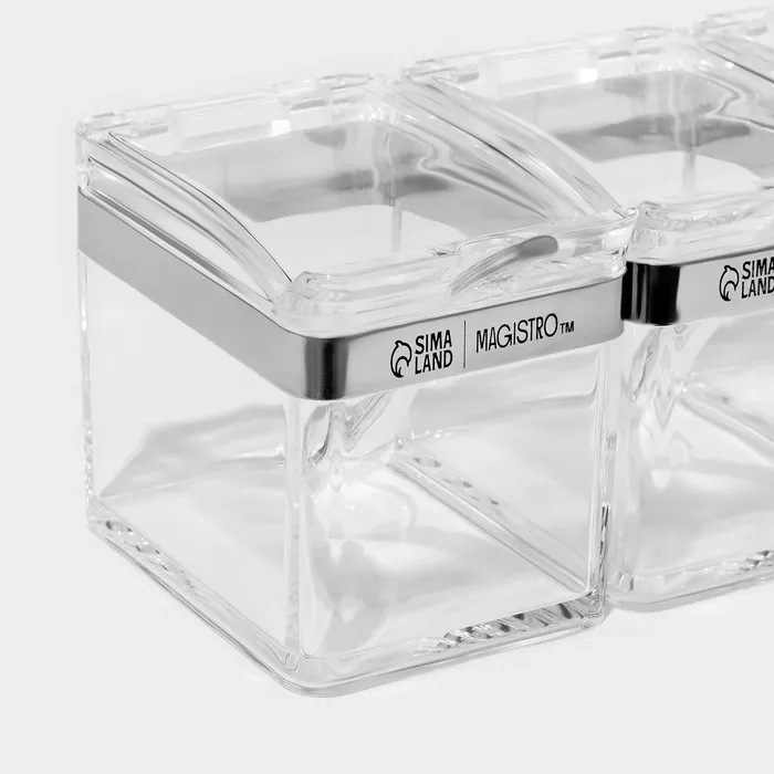 Набор ёмкостей для специй на подставке Magistro Glace, 8 предметов: контейнер 200 мл 4 шт., ложка 4 шт., акрил, прозрачный — Характеристики