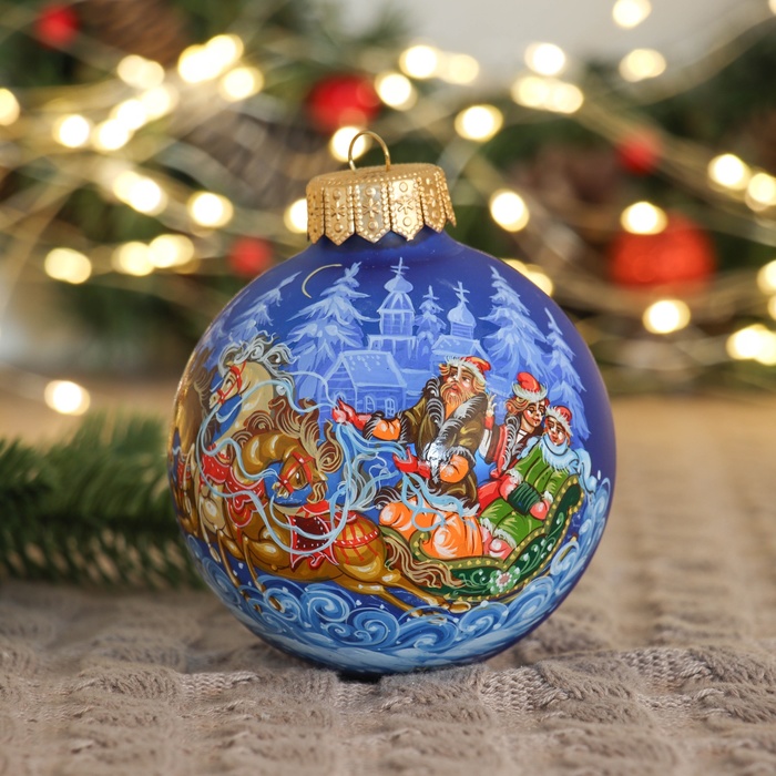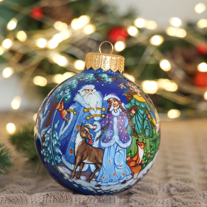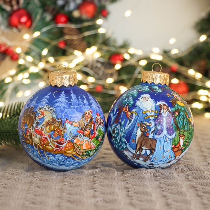 Двойка стеклянных шаров ”Зимняя сказка” привносит в новогодний декор лёгкость и цветовую гармонию. Каждый шар с рисунком отражает сочетание советского наследия и фьюжн-стиля, создавая атмосферу праздника и уюта.