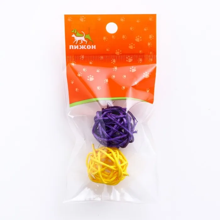 Набор из 2 плетёных шариков из лозы без бубенчиков, 3 см, фиолетовый/желтый — Характеристики