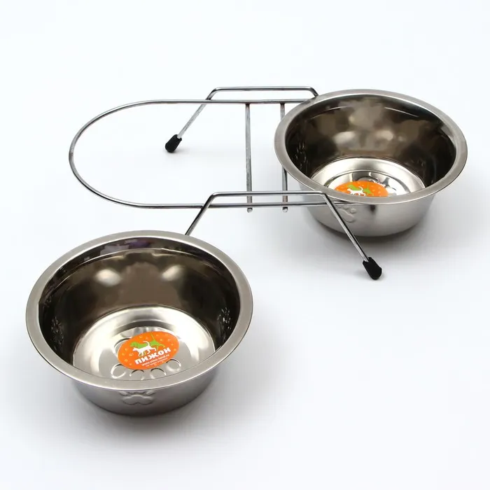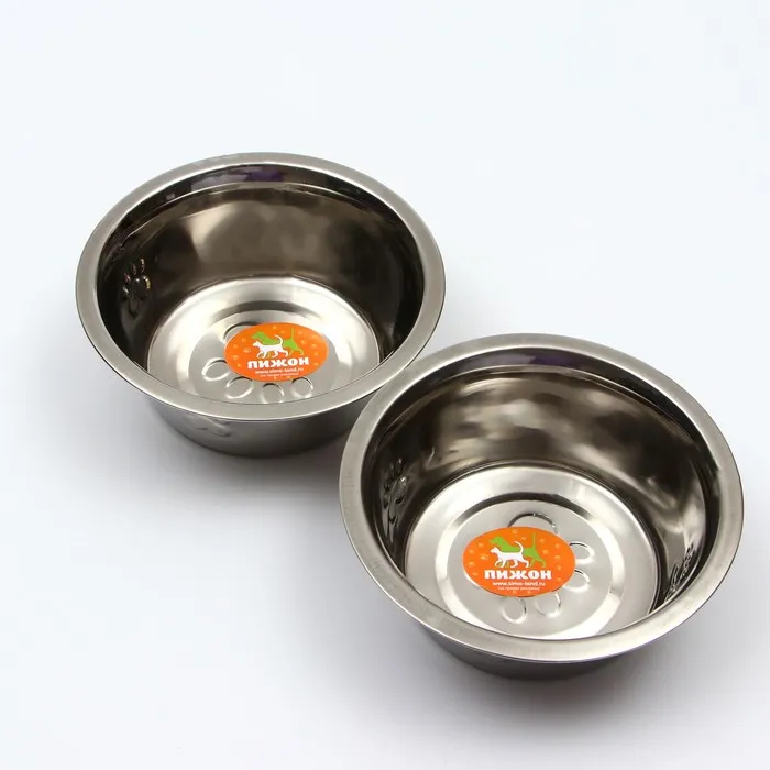 Набор из двух мисок изготовленных из качественной нержавеющей стали, которые предназначены для кормления домашних животных.