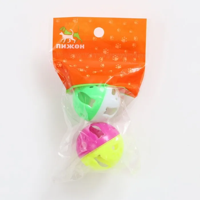 Набор из 2 шариков-погремушек "Рыбки и лапки", диаметр 3,8 см бело-зелёный/фиолетово-жёлтый — Характеристики