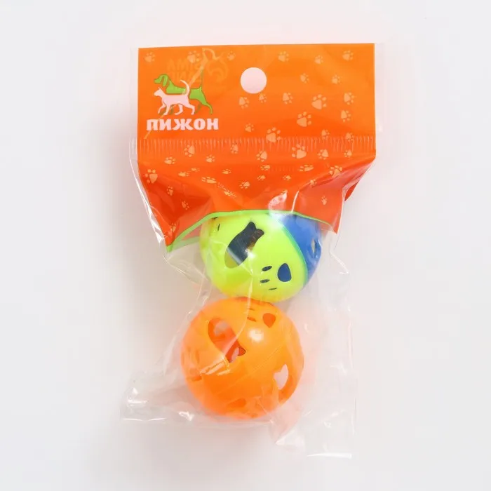 Набор из 2 шариков-погремушек "Рыбки и лапки", диаметр 3,8 см, желто-синий/оранжевый — Характеристики