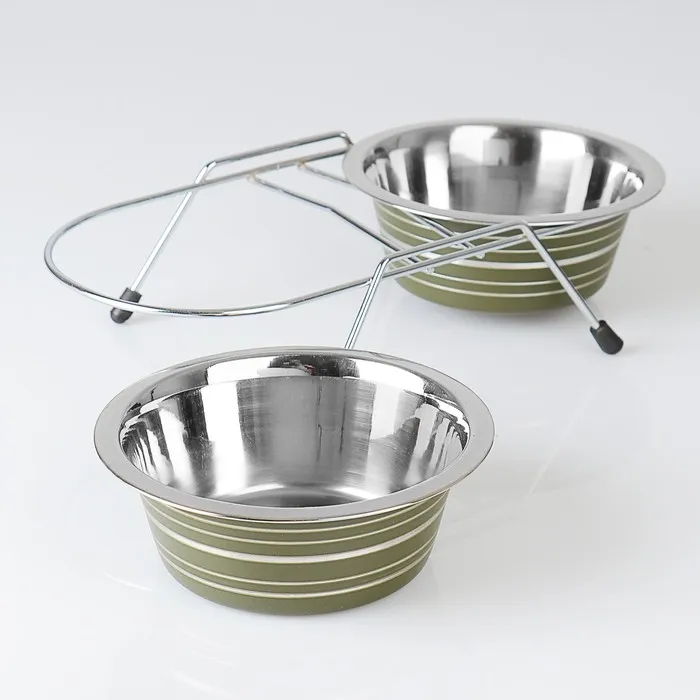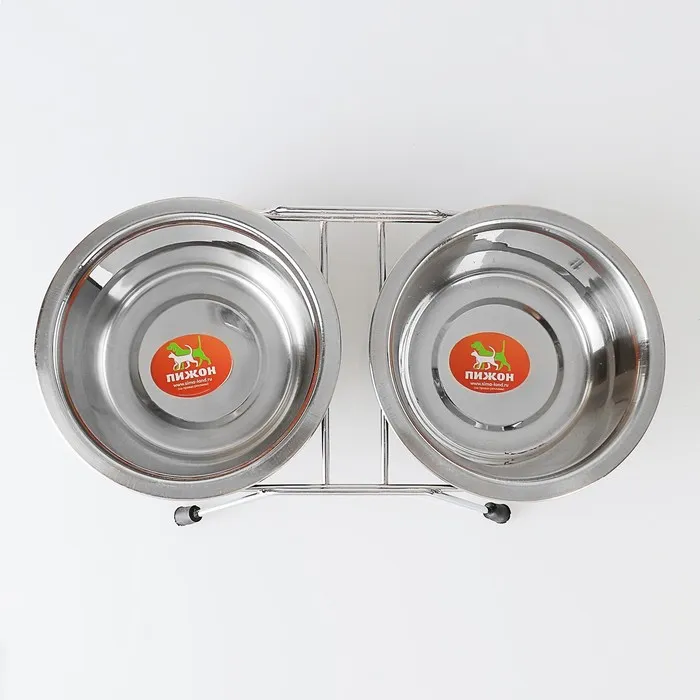 Набор из двух мисок изготовленных из качественной нержавеющей стали, которые предназначены для кормления домашних животных.