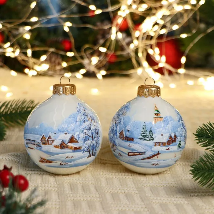 Эти шары напоминают снежинки в танце, каждая из которых вплетает ноты спокойствия и тепла. Они воскрешают образы морозных вечеров и семейных сборов у огня, создавая пространство, где зимняя композиция оживает, как мелодия под звёздами. В их сиянии расцветает магия праздника, объединяя близких в гармонии зимы.
