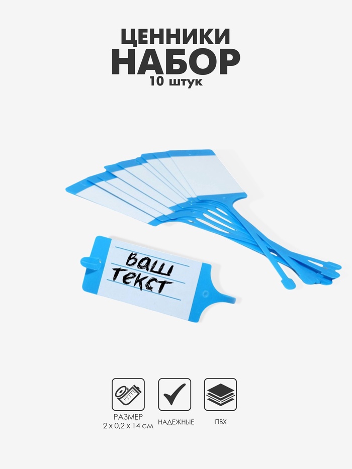 Ценникодержатель-стяжка, набор 10 шт., ПВХ, 2×0,2×14 см, цвет синий