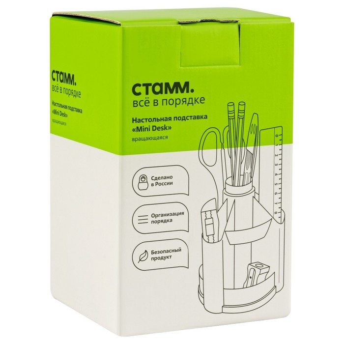 Набор канцелярских принадлежностей, СТАММ MiniDesk, 13 предметов, вращающийся, черный — Характеристики