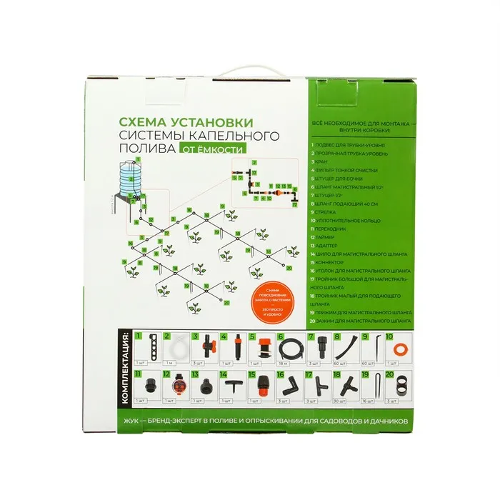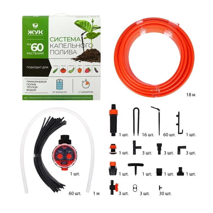 Набор капельного полива от ёмкости, на 60 растений, с таймером, «Жук» — Характеристики