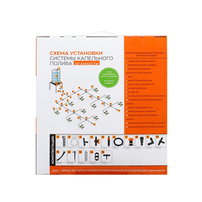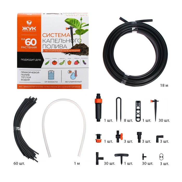 Набор капельного полива от ёмкости, с регулируемыми капельницами, 60 растений, «Жук» — Характеристики